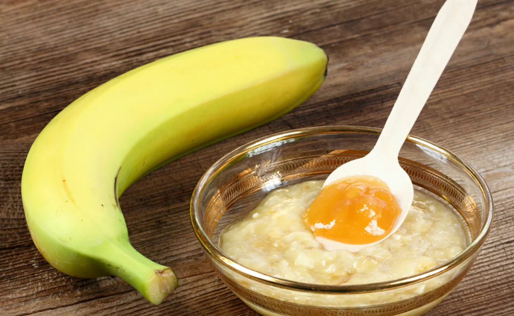 - Mash one ripe banana until it becomes a smooth paste.