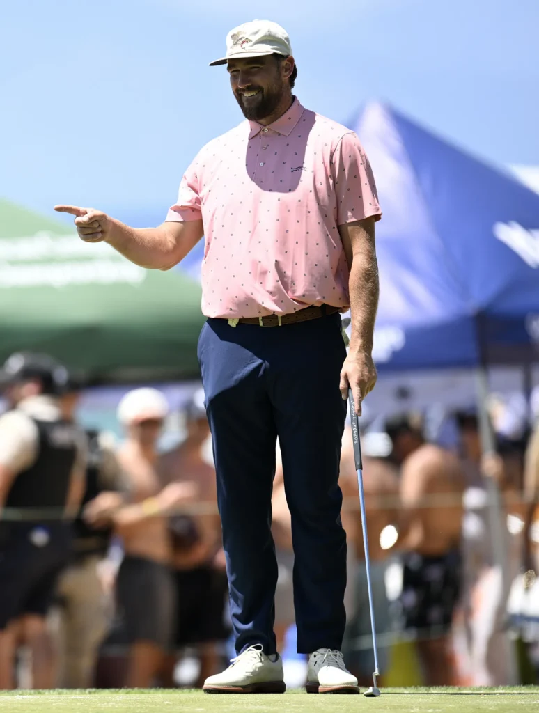 While warming up on the South Lake Tahoe course, the Kansas City Chiefs tight end, 35, was preparing to tee off when a Swiftie in the crowd shouted, “You have the best girlfriend in the world. You got it!”
